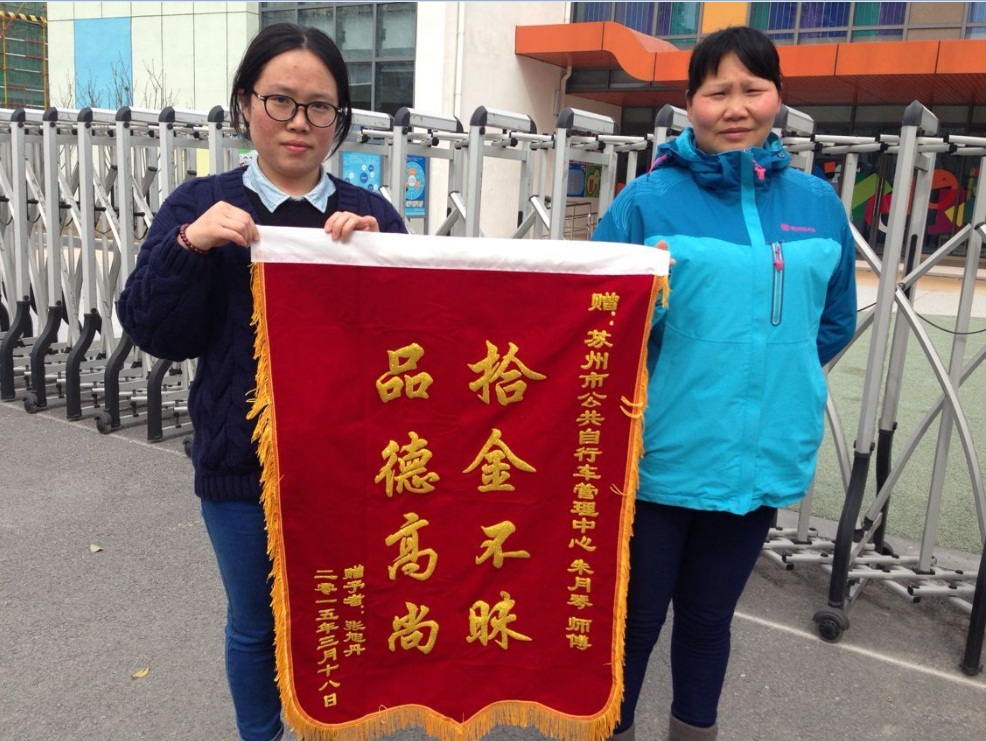 2015年3月2日,我公司員工朱師傅在錦荷苑站點(diǎn)巡查時,撿到市民的聯(lián)想筆記本電腦一臺,朱師傅在該站點(diǎn)等了近一小時,未見失主前來認(rèn)領(lǐng),就主動上交公司。公司及時聯(lián)系市民并將電腦歸還,市民對我們公司及朱師傅予以高度的贊揚(yáng),并贈送了旌旗以示感謝。