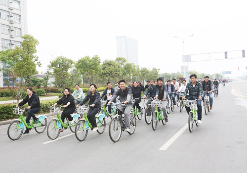 8日下午16點30分,隨著一聲令下,自行車隊浩浩蕩蕩地出發了,騎行隊伍從泗洪政務服務中心廣場出發,經過仁和路、淮河路、黃山路、長江路、青陽北路、和諧路至府前廣場,全程5000米。一路上,騎行隊伍整齊、有序,成為泗洪一道別樣的風景。其中,公共自行車作為領頭羊首當其沖,在車隊中顯得格外閃亮。泗洪公共自行車由常州永安公共自行車公司承建并負責運營,為泗洪市民解決了最后一公里問題的同時,也成為全新的城市風景線,受到了市民的歡迎與喜愛。