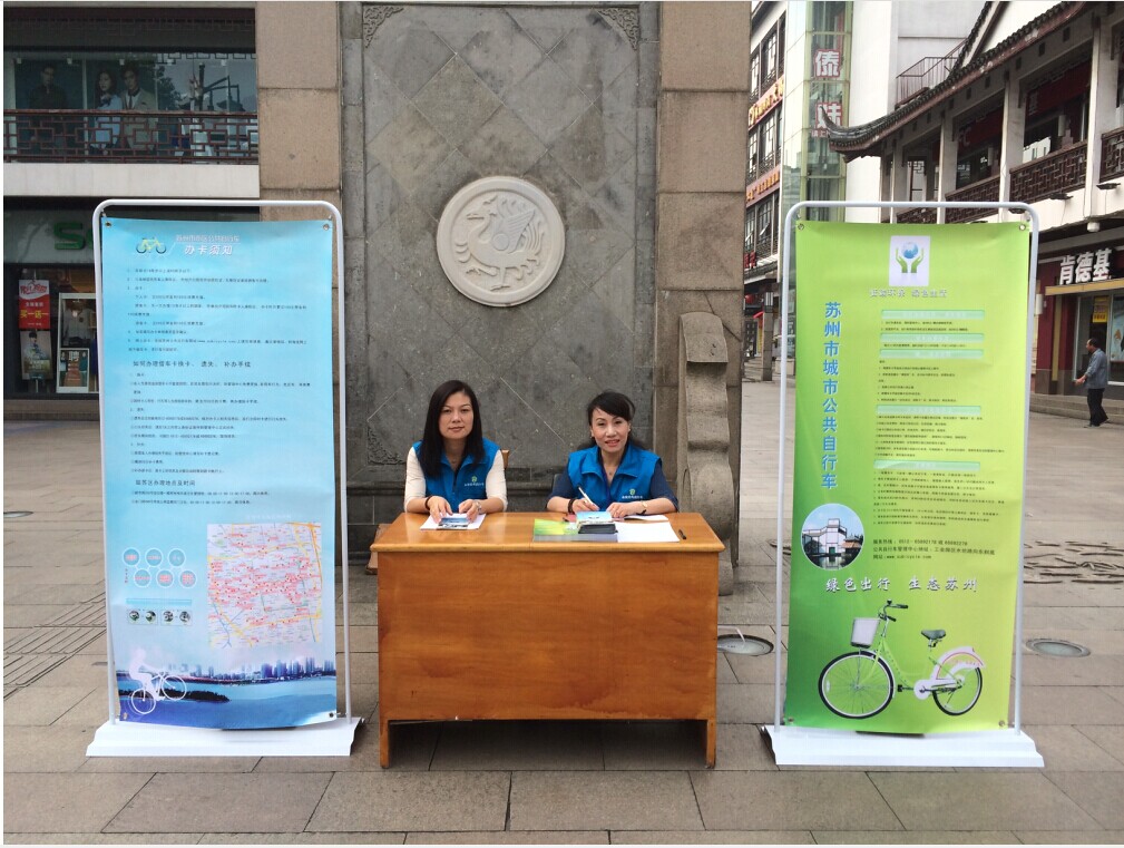為倡導“低碳生活、綠色出行”的生態文明理念,借助“無車日”活動的契機,提倡城市公共自行車交通,傳播公共自行車文化。蘇州市市區道路停車管理所在9月20日上午(周六)開展公共自行車“一卡在手,騎樂無窮”宣傳活動,停車所青年職工和大學生志愿者一起參與到了此次活動的各項工作中。公共自行車配合此次活動,在觀前街設立了臨時辦卡點,并向成功辦卡的市民發放紀念品。