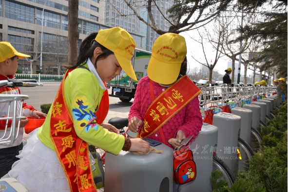 我市推行公共自行車以來,給廣大市民帶來了方便,然而也出現了隨意丟棄公共自行車、公共自行車載人等不文明現象,嚴重影響了公共自行車的正常使用。對此,濰坊市公共自行車管理中心的工作人員呼吁市民養成良好的騎行習慣,一定要愛護公共自行車,不要破壞它。