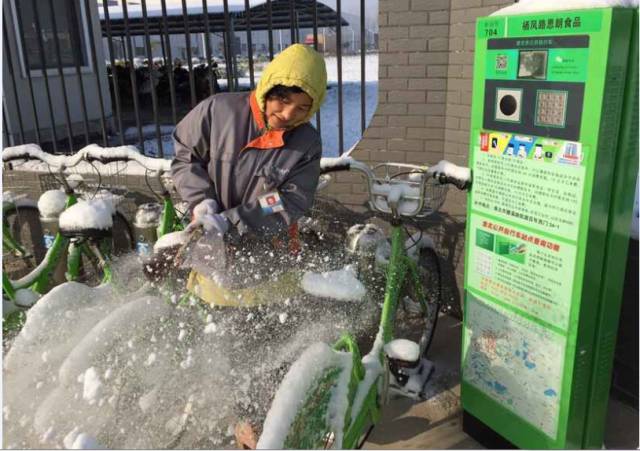 也許您從未注意過與我們擦肩而過的她們,但一定享受過干干凈凈的“小綠”給你們帶來的便利。她們騎著電瓶車,穿梭于每個大街小巷,仔細地檢查每一輛自行車。看見了嗎?她們手里的螺絲刀和抹布便是“魔法棒”,在降雪下雨時,總會仔細反復地擦除自行車上的積雪和泥濘,雖弄得滿身泥水,但能看到市民騎著干凈如新的自行車,她們便是溫暖的。