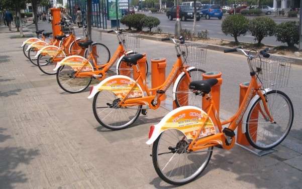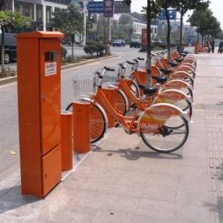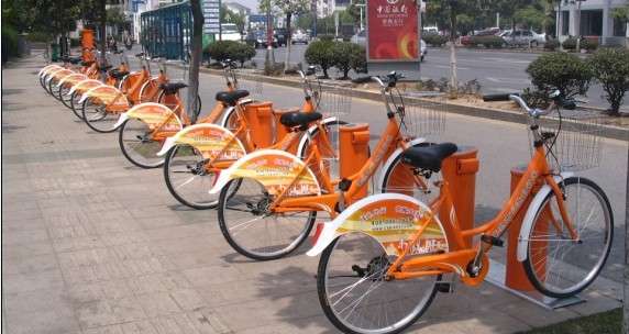 4月25日是值得紀念的一天,常熟市首批公共自行車亮相在常熟市街頭。圖為虞山公園公共自行車站點,已開始上車準備運營(具體開通時間請關注常熟公共自行車網站公告)