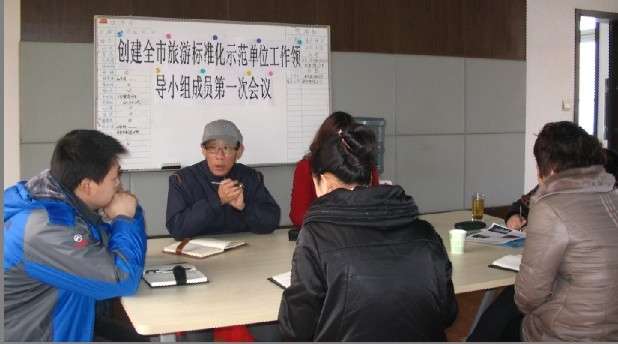 一、聯絡員郁金香在會上宣讀了關于創建全市旅游標準化示范單位工作領導小組的通知。并確定每月5號左右開一次成員例會。