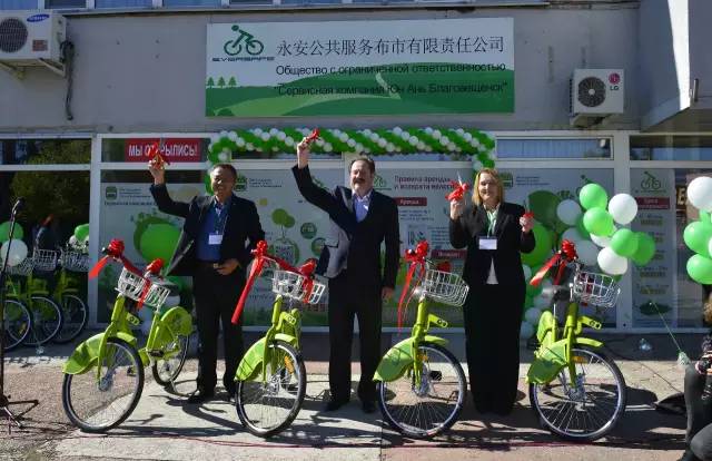 永安公司在布市運營啟動儀式今年在俄羅斯布拉戈維申斯克市先期項目工程,建設(shè)12個租車站點,安裝300個鎖車器,投放250輛自行車。主要分布在布市沿岸大街、列寧大街、結(jié)雅大街和高爾基大街,為滿足俄羅斯布市市民的需求,今后,永安公司將在布市學校、醫(yī)院、機關(guān)單位、商業(yè)區(qū)以及居民區(qū)建設(shè)自行車站點。