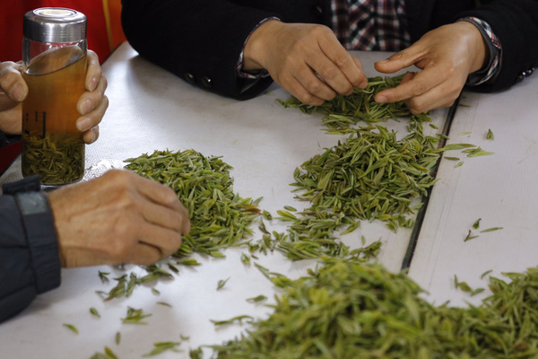 三月底剛好是春茶采摘季節,剛好遇見茶農采茶,采摘的是一芽一葉,選茶,