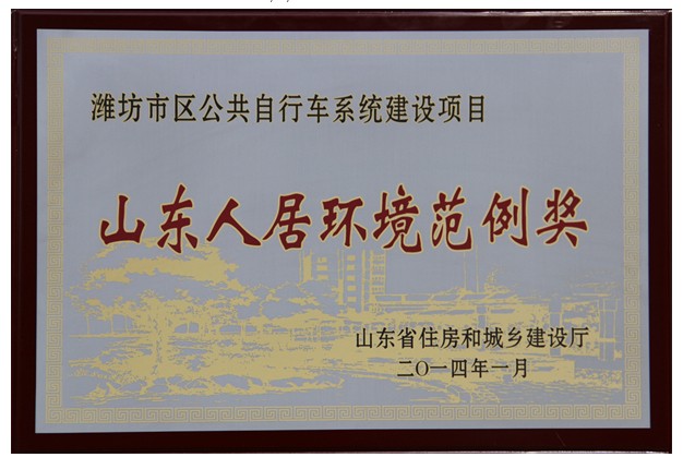 熱烈祝賀濰坊市區公共自行車系統建設項目獲山東人居環境范例獎
