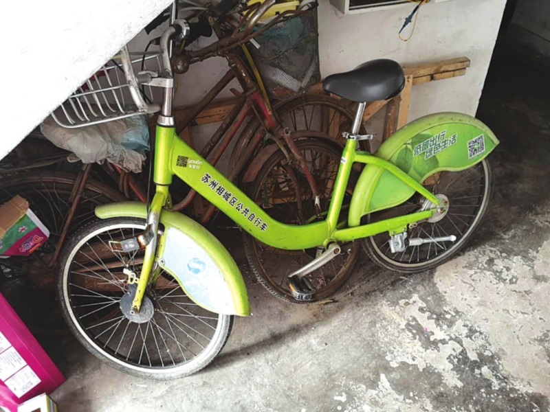 家住吳中區(qū)水香六村的劉阿姨發(fā)現(xiàn),自家單元樓道內(nèi)不知道什么時(shí)候多了一輛公共自行車。這輛“小綠車”就這么擱著好多天了,劉阿姨心想:這該不會(huì)是被誰“偷”了擺在這里的吧?