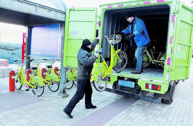 25日,黑河市區便民公共自行車運行系統全面關閉,進入冬季停運階段,工作人員將各網點自行車運回庫進行檢修。