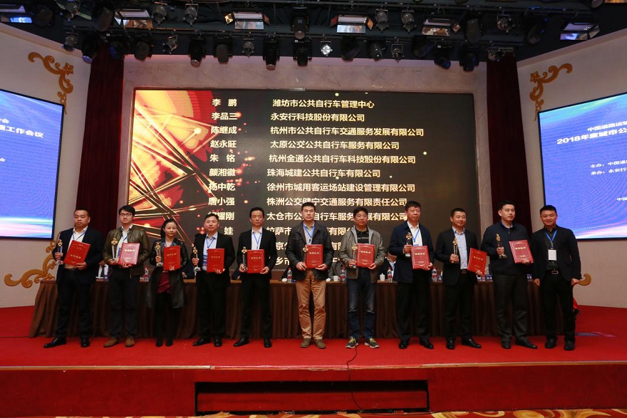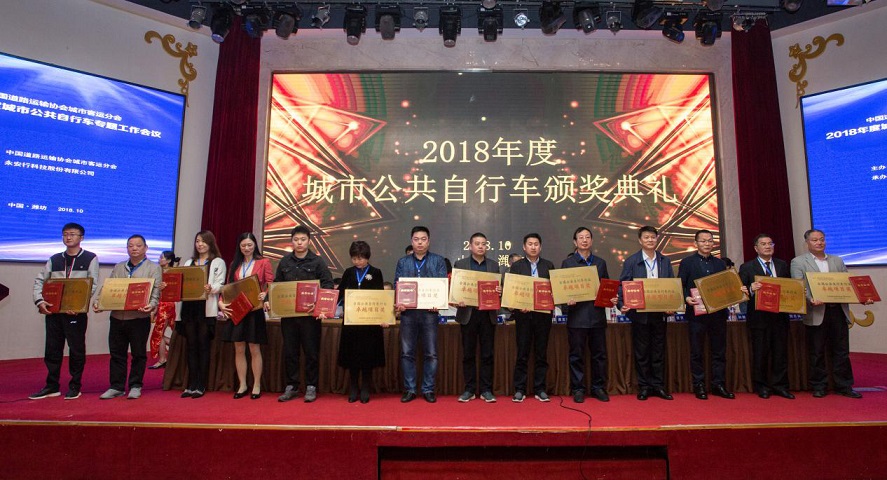 會議首先由濰坊市城市管理局局長張文作為會議主辦地代表進行致辭,由中國道路運輸協會城市客運分會的常務副秘書長曹承對會議順利召開致賀詞,由中國道路運輸協會城市客運分會公共自行車工作部主任黃志耀審議通過2018年度城市公共自行車工作部工作報告,并宣布了《關于表彰城市公共自行車先進集體和個人的決定》,其中濰坊市公共自行車項目、杭州市公共自行車項目等15家單位榮獲全國公共自行車行業卓越項目獎。永安行科技股份有限公司等8家單位榮獲全國公共自行車行業產品創新獎,珠海城建公共自行車有限公司等28家單位榮獲全國公共自行車行業優秀管理獎,濰坊公共自行車李鵬同志等37人獲優秀管理者稱號。
