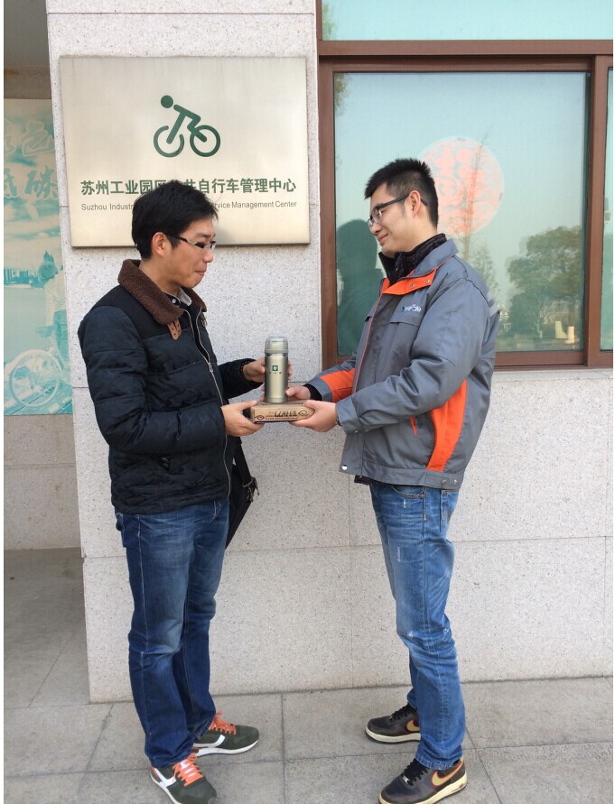 2014年12月23日,我們巡檢師傅進(jìn)行日常工作的時(shí)候在車籃里發(fā)現(xiàn)了一個(gè)保溫杯和一個(gè)盒子。雖然物品不是很貴重,但是師傅在撿到的第一時(shí)間便聯(lián)系了我們客服人員,將撿到的物品交至公共自行車管理中心暫為保管。2014年12月29日,拾檢到的物品已被失主的朋友代為領(lǐng)取。