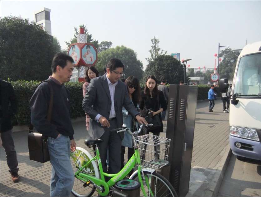 12日上午孫總接受記者的采訪,向記者介紹了蘇州公共自行車在創建旅游標準化方面的工作。