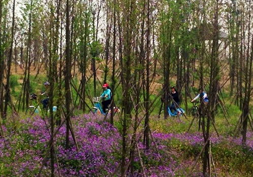 4月18日,永安員工伴著和風絮語,單程騎行10公里,來到新龍森林公園進行了一次“森呼吸”。鳥語花香,一輛輛顏色鮮艷的公共自行車在林蔭道間穿梭,永安員工沿路播撒著歡聲笑語,與大自然來了一次親密的接觸。