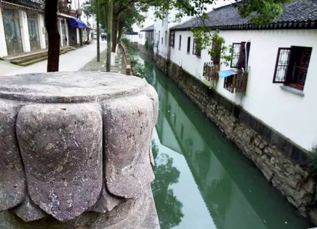 從橋上也能看到光福古鎮里的江南風光。枕河人家,白墻黑瓦,流水潺潺,也是頗有意境。