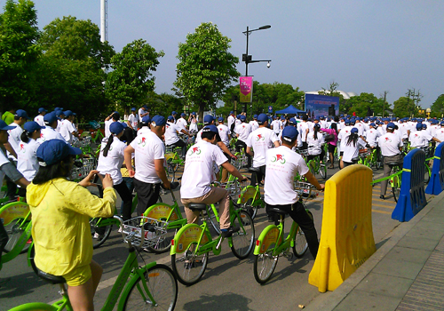 5月9日,2015“工會(huì)杯”常熟市首屆市民(職工)自行車賽在常熟昆承湖畔舉行。 此次比賽是常熟市首次舉辦自行車賽。比賽為環(huán)昆承湖公路繞圈賽,由常熟市總工會(huì)、常熟高新技術(shù)產(chǎn)業(yè)開發(fā)區(qū)管委會(huì)、市體育局主辦,市自行車運(yùn)動(dòng)協(xié)會(huì)承辦。所用公共自行車由常州永安公共自行車公司提供。 比賽約有400名選手報(bào)名,并分為競(jìng)賽組和健身組。競(jìng)賽組由自行車協(xié)會(huì)組織,屆時(shí)將騎行公路自行車和山地車,挑戰(zhàn)速度與激情。健身組由20個(gè)鄉(xiāng)鎮(zhèn)及系統(tǒng)工會(huì)召集,將全程騎行公共自行車,宣傳綠色生活的理念。