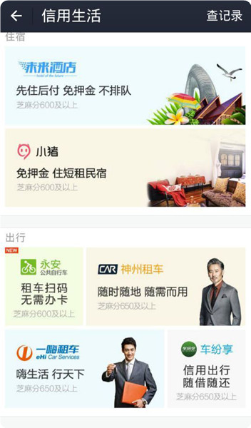 打開【支付寶】app,點擊【芝麻信用分】,點擊【信用生活】,點擊【永安公共自行車】,點擊【我的】進行免費注冊,即開通掃碼租車功能。