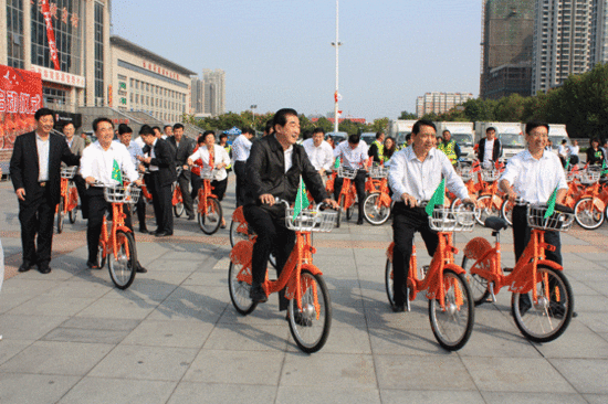 山東濟寧城區萬輛公共自行車啟動為市民"十一"獻禮
