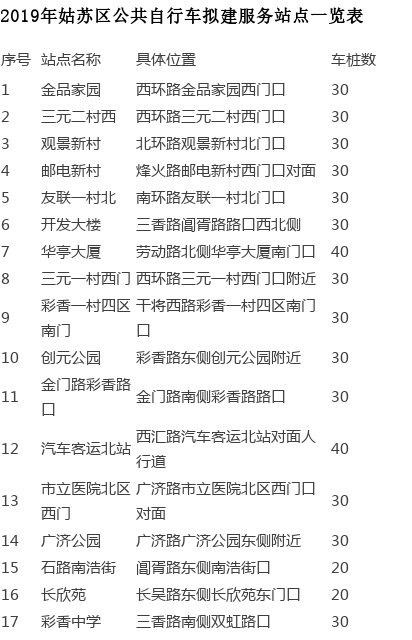 今天,蘇州市城市管理局官網發布《2019年姑蘇區公共自行車擬建服務站點公示》。為不斷完善姑蘇區公共自行車網點布設,按照《蘇州市公共自行車系統專項規劃》方案并結合市民意見,經前期踏勘,擬定2019年新建公共自行車服務站點70個,計劃投放公共自行車2500輛,站點建設將分期分片組織實施。