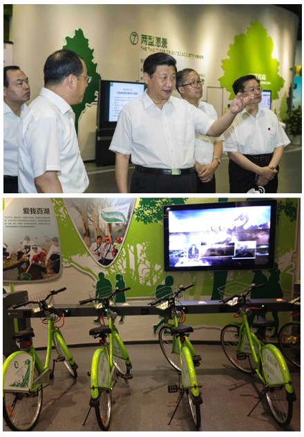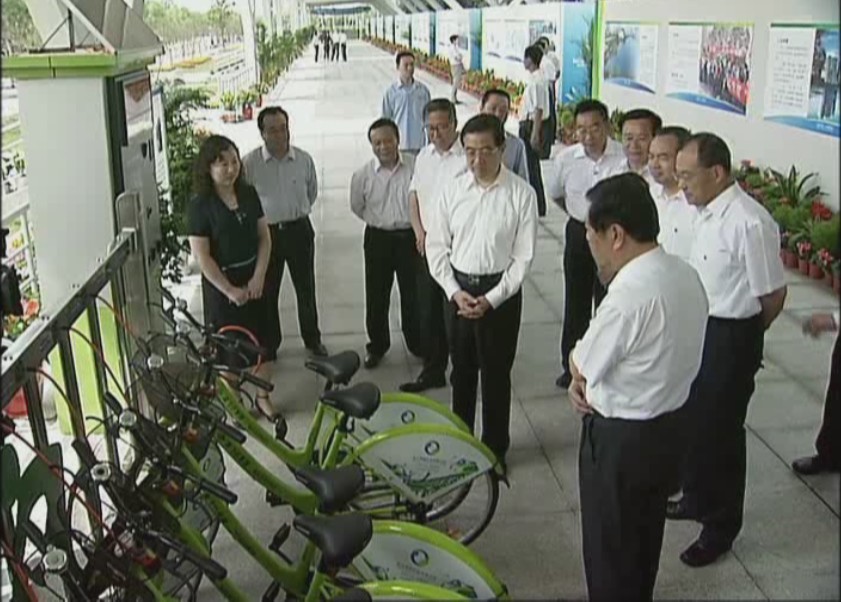 記得二零一一年六月份,我們的國家主席胡錦濤同志在武漢視察兩型經(jīng)濟(jì)建設(shè)成果展時,他還親自刷卡“借”綠色環(huán)保自行車,體驗(yàn)“武漢特色”綠色出行。無獨(dú)有偶,事隔近兩年后,現(xiàn)任的國家主席習(xí)近平同志代表黨中央再次參觀武漢兩型經(jīng)濟(jì)成果展。觀看并贊許了武漢公共自行車智能系統(tǒng)租還演示。兩任國家主席的兩次視察標(biāo)志著我們國家和政府對綠色出行的高度重視,對現(xiàn)代城市兩型經(jīng)濟(jì)建設(shè)的高度重視!