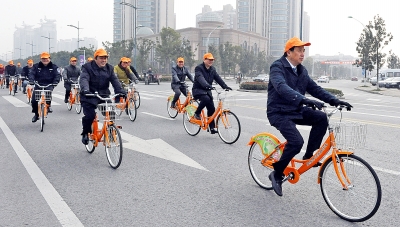 昨天上午,宜興市民期待已久的公共自行車服務系統正式啟用,首批1200輛公共自行車向公眾開放。市領導王中蘇、張立軍、邵亞群、王華良、何曉進出席啟用儀式,并與近百名市民代表一起從宜園騎行至團氿城市濕地公園,以低碳、環保的出行方式踐行、倡導綠色出行。